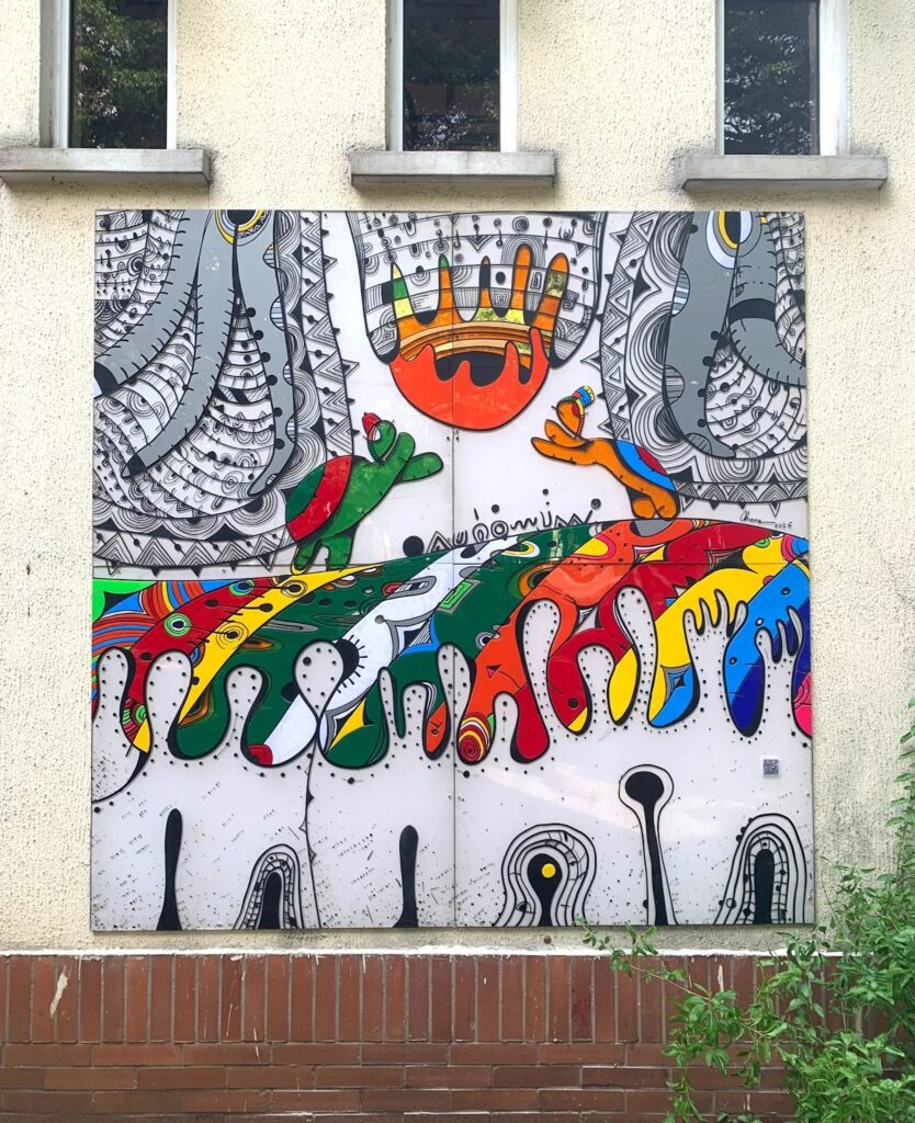 “Onye Punuka” pays tribute to the often-overlooked narrative of a woman whose name became integral to a family’s historical legacy. In the context of Justice Chukwunweike Idigbe’s family history, Onye Punuka was the wife of Obi Idigbe, the great-great-grandfather of the renowned Nigerian jurist. By centering the artwork on her, Chuma Anagbado illuminates the untold stories of women who, despite being marginal in historical records, played crucial roles in shaping family and community narratives. The artwork’s elements and symbolism highlight how women’s entrepreneurial activities and wisdom often formed the unacknowledged foundation of family legacies, community development, and generational wealth. Its placement in the Punuka Associates HQ marks the structure as a modern economic center in the heart of Africa’s busiest city—Lagos.