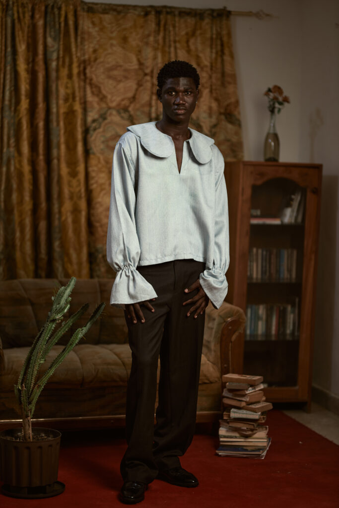 The collection explores gender fluidity, strength, and sensuality through a series of bold, elegant looks. Each garment is tailored to move with the wearer, creating room for confidence and vulnerability in equal measure. While rooted in West African textures and craftsmanship, the silhouettes feel modern — even futuristic. It’s a visual love letter to the