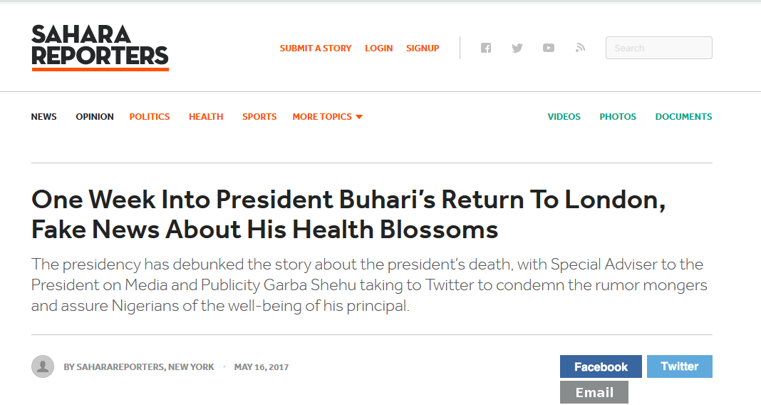 Headline from Sahara reprters, calling out fake news