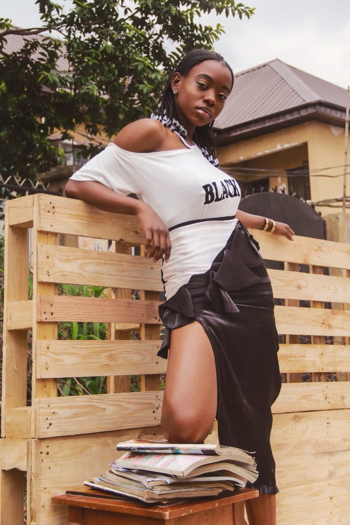 Driven by this, this installment of the #NBThingsofMe edit showcases the subject, Sandra interacting with a major source of inspiration for her creative process. Staged on a wooden set, she is pictured in two Nola Black outfits that encapsulate the ethos of the brand – quirky, modern and emotional.