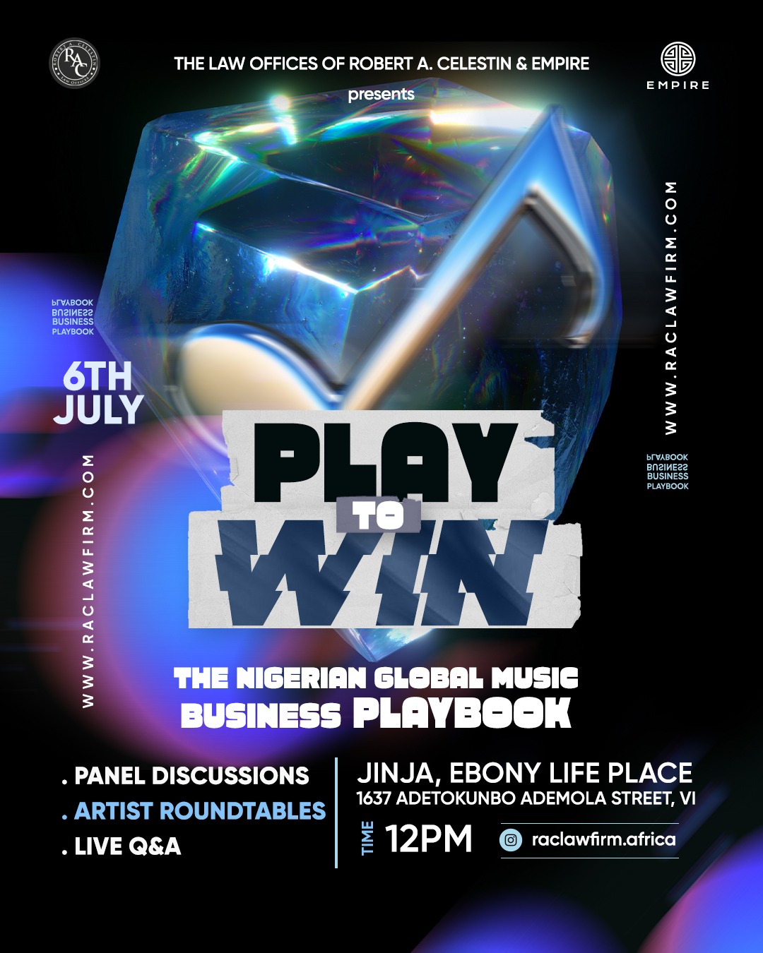 In an unprecedented move, The RAC Law Firm will establish its presence in the region with a captivating initiative scheduled for July 6th to 8th in Lagos, Nigeria. Partnering with the African division of renowned U.S. music label EMPIRE, the two-day event, titled “Play to Win: The Nigerian Global Music Business Playbook,” promises to be a transformative and educational experience for artists and industry stakeholders alike.
