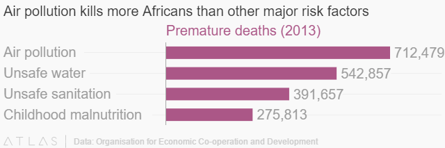 ‘The city of Onitsha, nearly 200 kilometers (125 miles) north of Port Harcourt, was in May last year named as having the world’s worst levels of PM10 particles. PM10 are microscopic particles in the air measuring between 2.5 and 10 thousands of a millimeter or micrometers. They can come from smoke, dust, soot, vehicle exhausts, and industries. Doctors in Port Harcourt say they are seeing the health effects of the soot already, with an increase in consultations for breathing difficulties, including asthma. Children and the elderly are most at risk. The United Nations Environment Programme (UNEP) estimates some 600,000 people die in Africa every year as a result of air pollution. Environmentalists are also sounding the alarm, as the soot has been found to contain sulfur dioxide and nitrogen dioxide, which cause acid rain when combined with moisture. ” via Vanguard.
